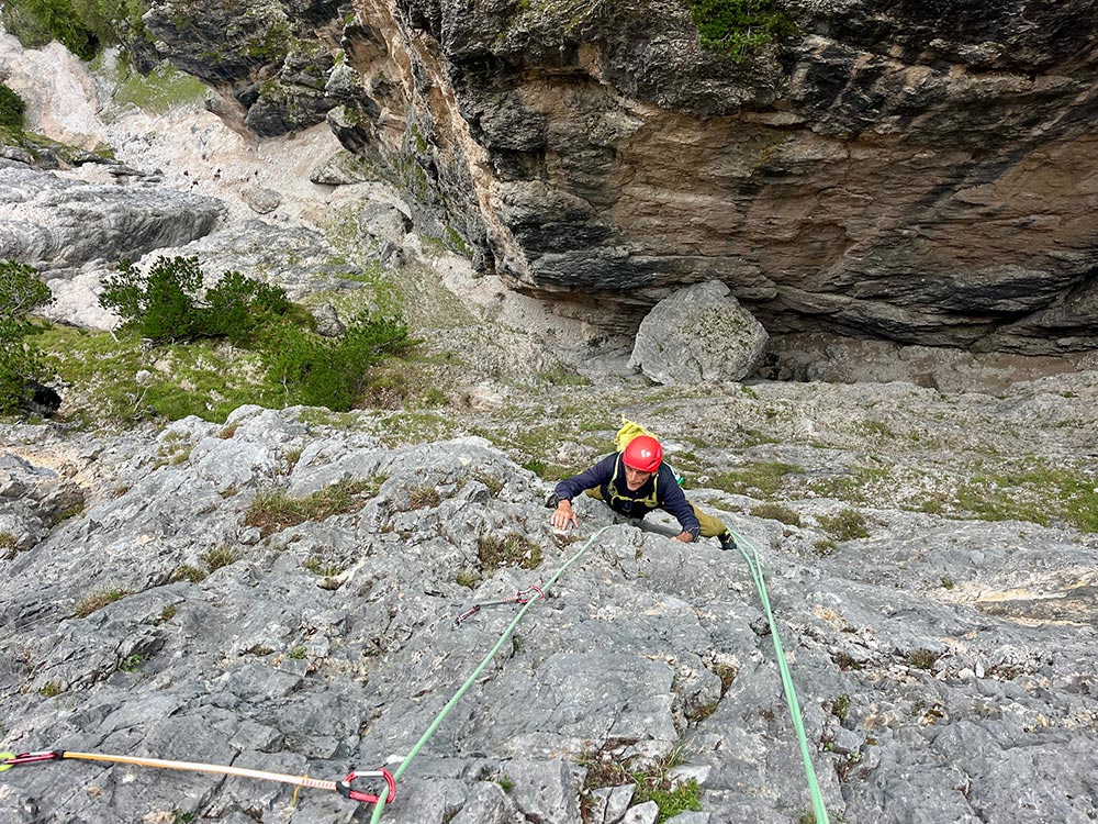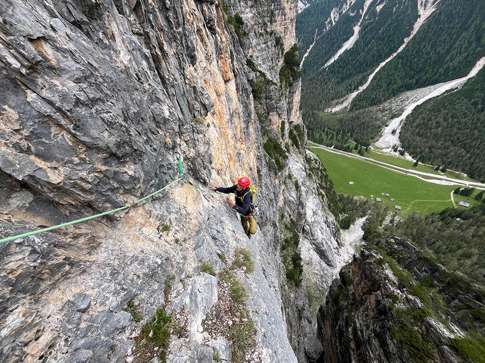 Erstbegehung: Christoph Hainz, Solo, von unten, Mai bis Juni 2025.
