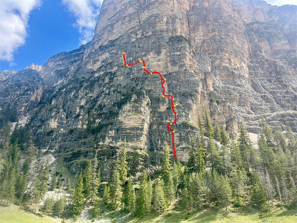 Erstbegehung: Christoph Hainz, Solo, von unten, Anfang Mai 2025
