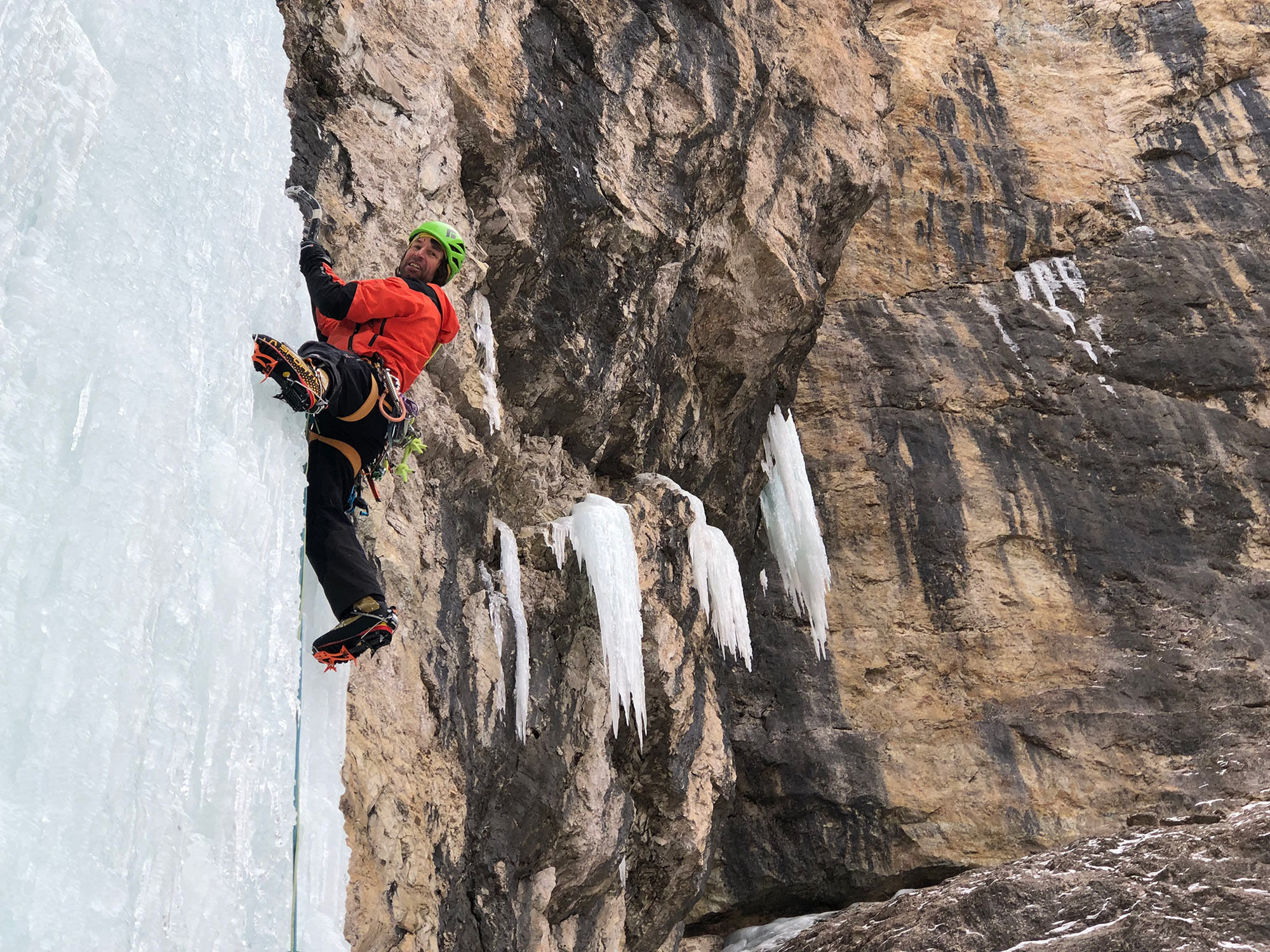 Übersicht: Die ersten 25 m sind senkrechte Kletterei. Auch die letzte SL ist nicht zu unterschätzen. Bei guten Bedingungen hat die Tour bis auf die ersten Meter kompaktes Eis.