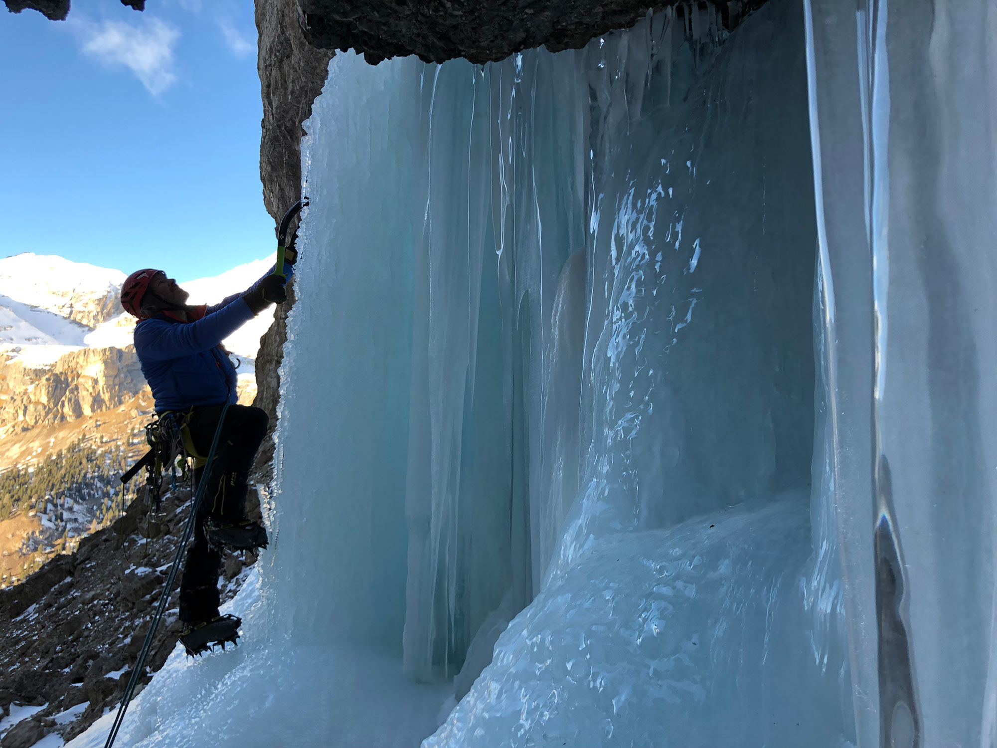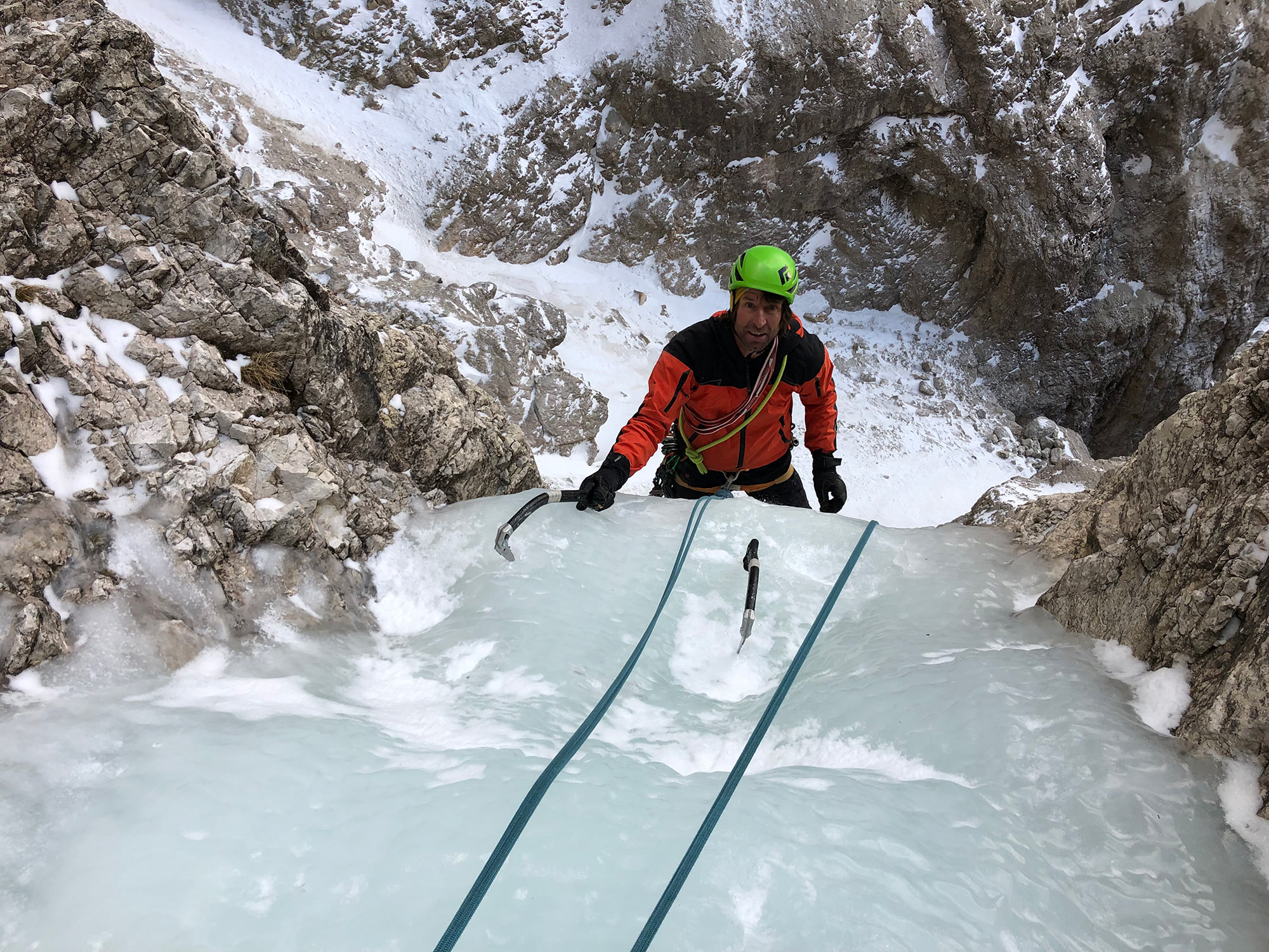 Abstieg: über den Eisfall abseilen.